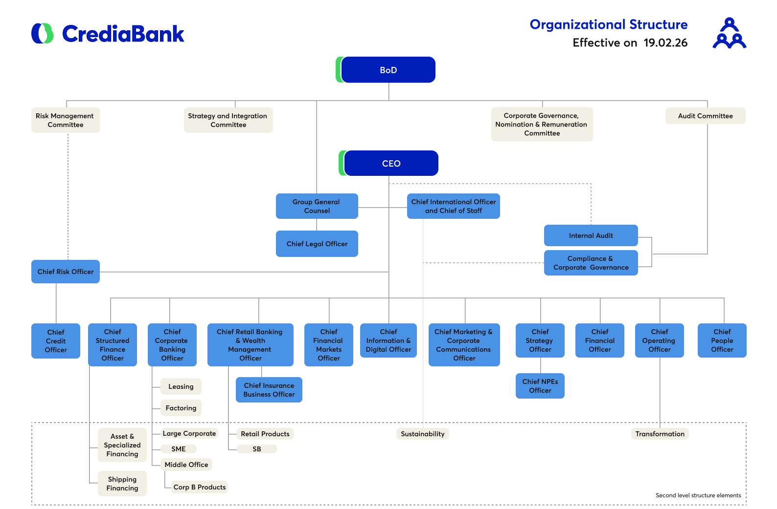 Πώς δομείται το οργανόγραμμα της CrediaBank